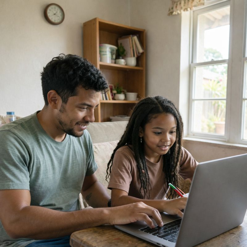 "This laptop has given us a fighting chance. I'm confident about finding work, and my daughter's doing great. She's already teaching my son to use it.'
